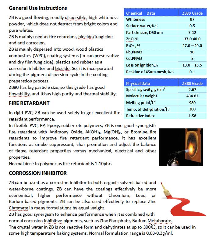 ZB80 fourmulation: 2ZnO.3B2O3 .3.5H2O